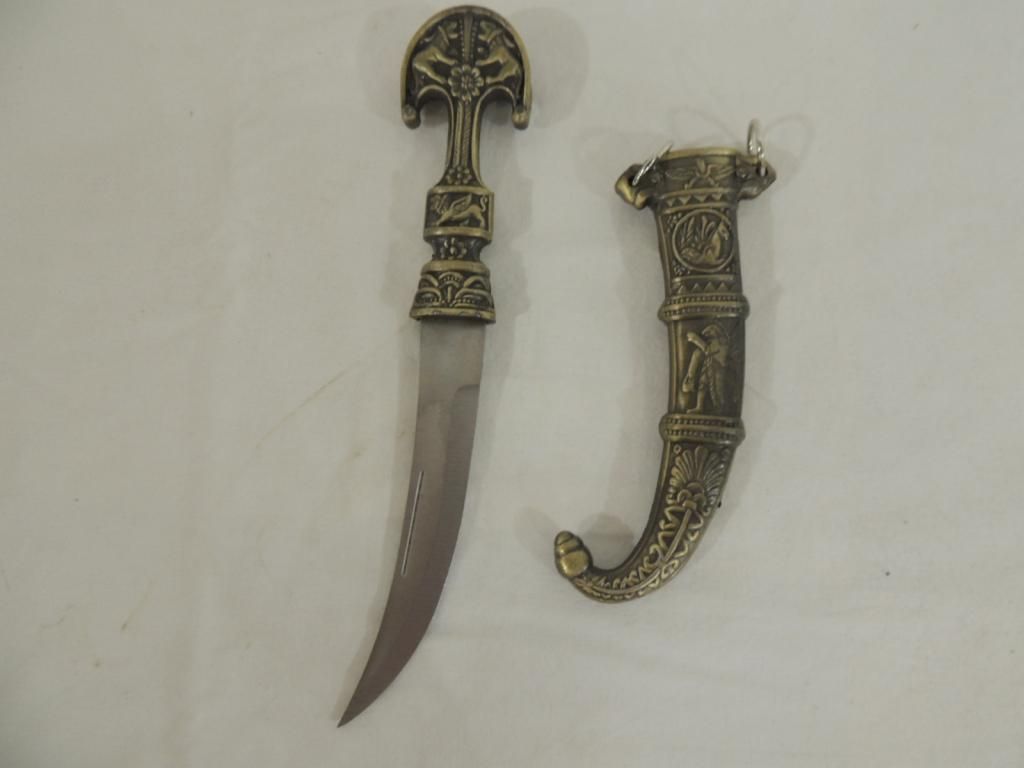 EGYPTIAN STYLE STAINLESS STEEL KNIFE & SHEATH. AS SHOWN. VIEW PICTURE FOR DETAIL. FANTASY DAGGER KNIFE.