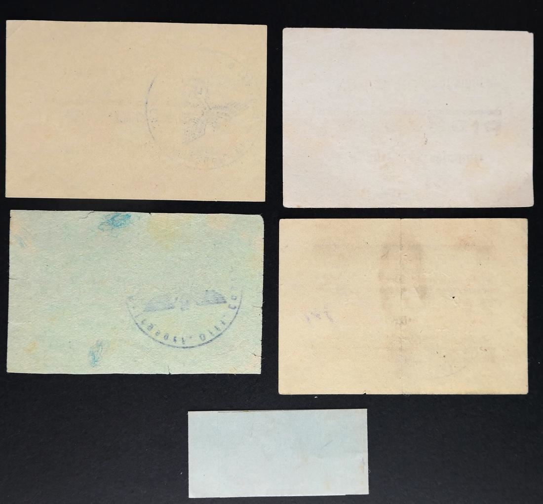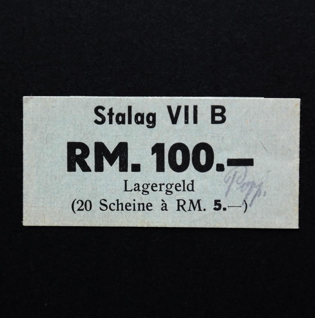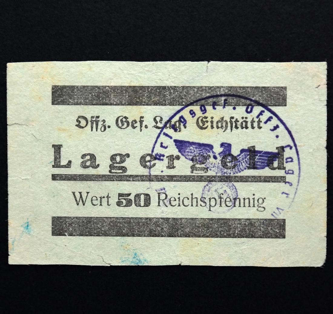 Offz. Ges. Lag. Eichsttt / Lagergeld 5rpf, 10rpf, 50rpf and 1RM notes with violet Lag. VII B control handstamps, the 5rpf and 10rpf are Extremely Fine to About Uncirculated, the 50rpf has edge tears and tone spots, Fine, and the 1RM has creases and a pinhole, VF, also includes a wrapper for 5RM notes.