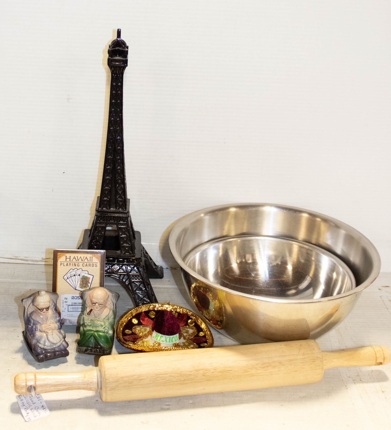 EIFFEL TOWER, ROLLING PIN, METAL BOWLS & MORE