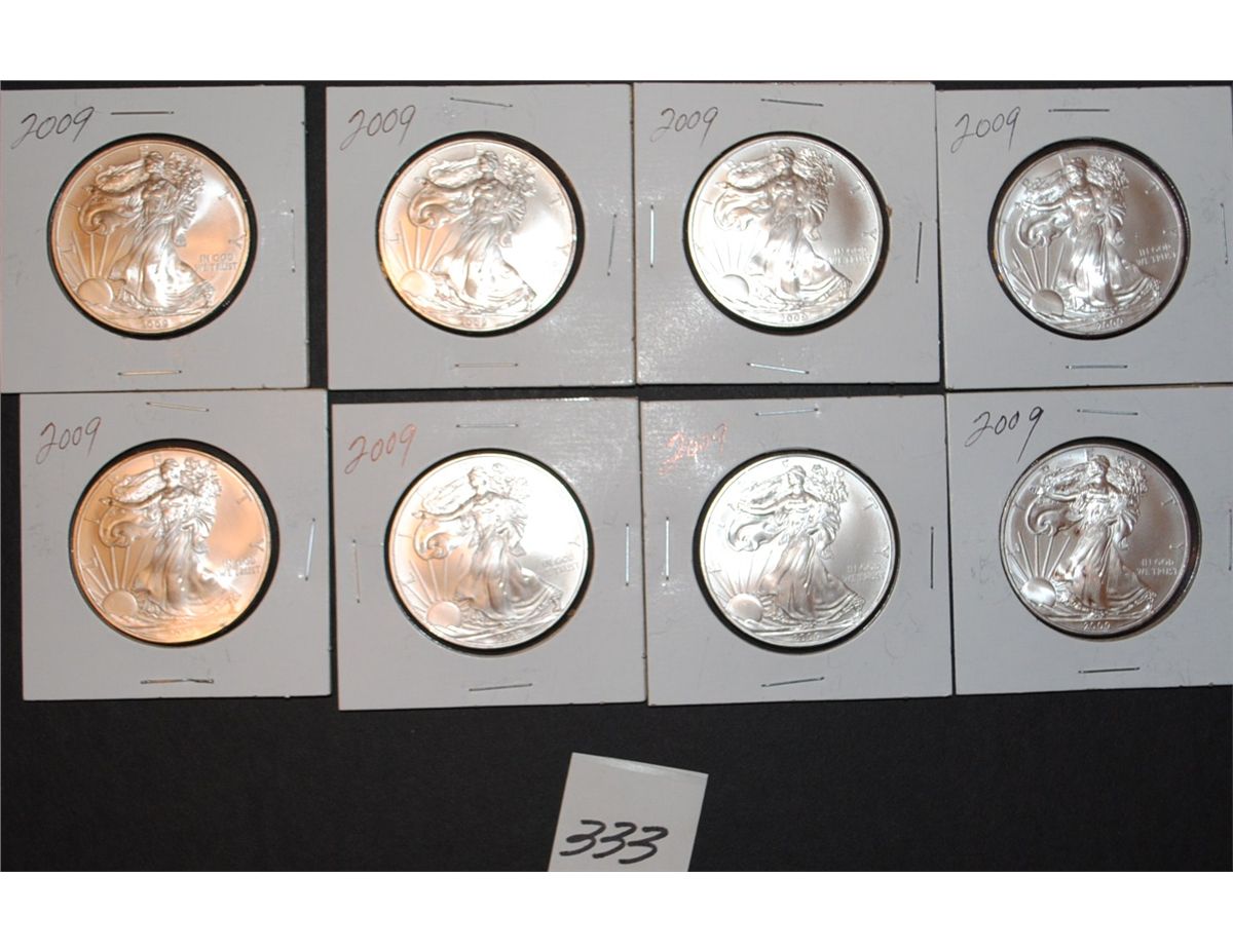 EIGHT 2009 AMERICAN SILVER EAGLES - SOLD PER COIN TIMES 8