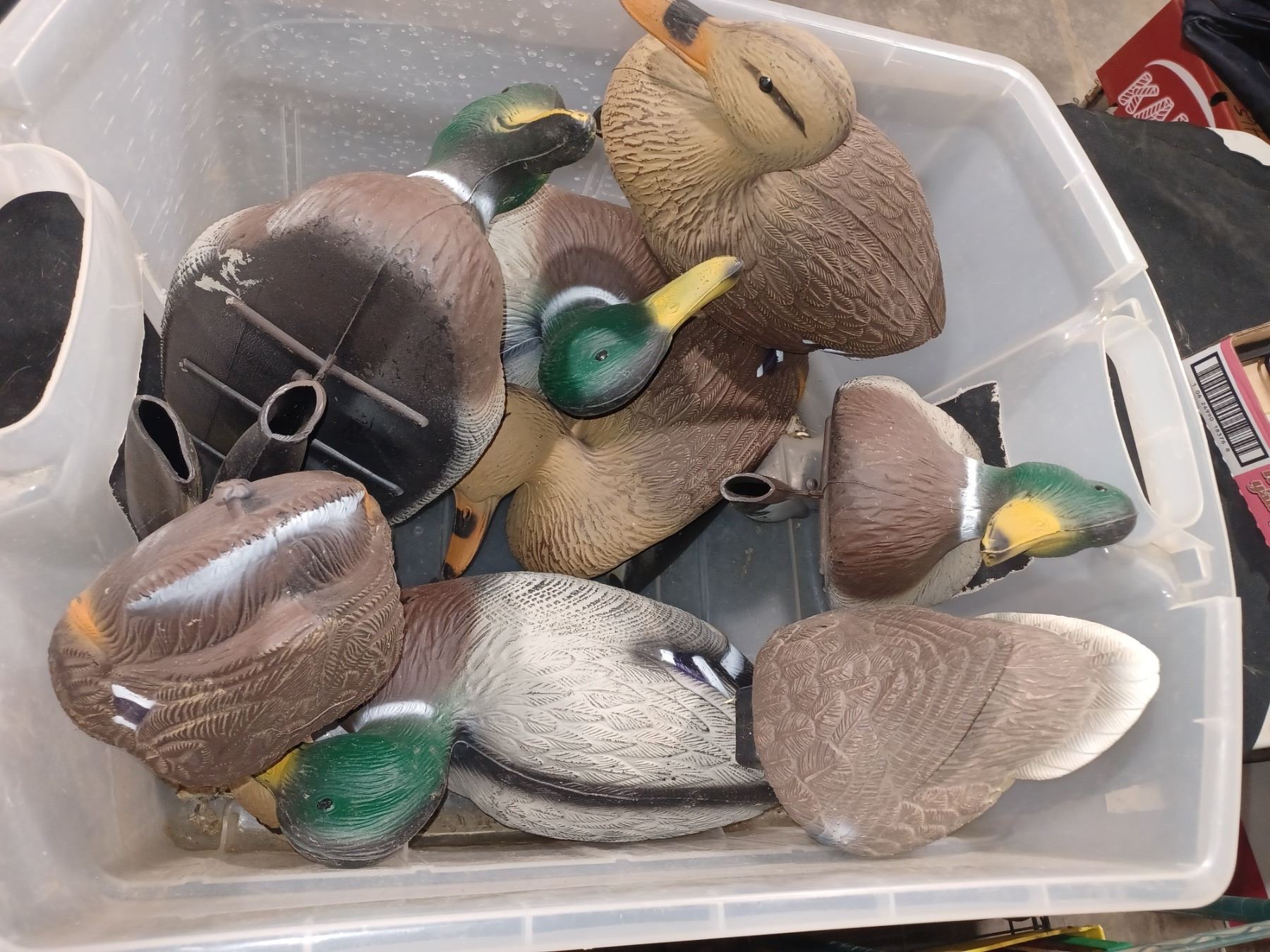 EIGHT FLOATING MALLARD DECOYS - FOUR DRAKES, THREE HENS AND ONE HEN TAIL