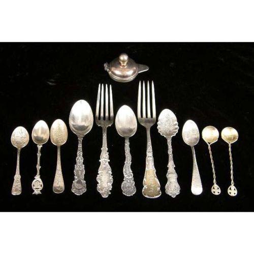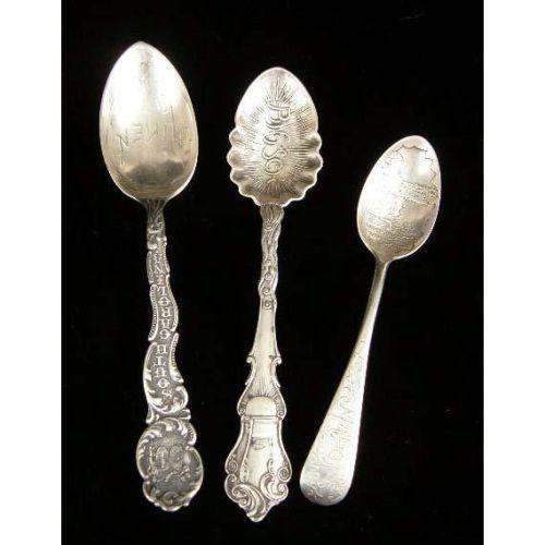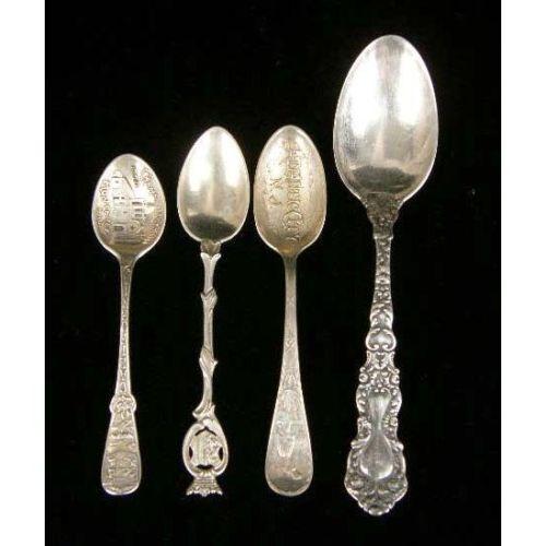 EIGHT STERLING SILVER SOUVENIR SPOONS<BR><BR>Together with three miscellaneous silver plated spoons, approximately 5 t.o.