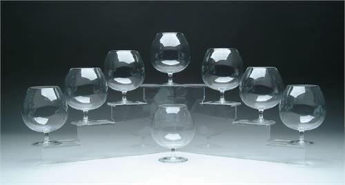 EIGHT STEUBEN BRANDY BALLOONS. Wonderful set of finely blown brandy balloons are signed on the underside with an "S" within ground pontil. Pictured on pg. 347 of the new Madigan book "Steuben Glass: An American Tradition in Crystal". SIZE: 6-1/4 in. t. CONDITION: Very good to excellent. 5-61156