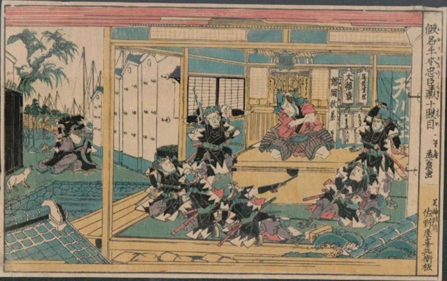 EISEN: CHUSHINGURA ACT 10. OBAN, MEASURES AT 8 1/8 X 13 3/16. CIRCA 1845.