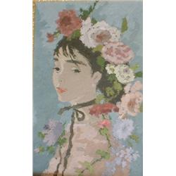 EISENDIECK, Suzanne, 1908-1998. "Coiffure de Sortie". Huile sur toile, signée. Titrée verso. École allemande. Oil on canvas, signed. Titled verso. German School. Provenance: The Paris American Art Gallery, Paris. 16 1/4" x 10 1/2" - 41.2cm x 26.6cm. $2500/3500