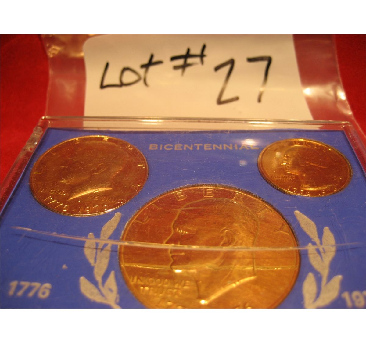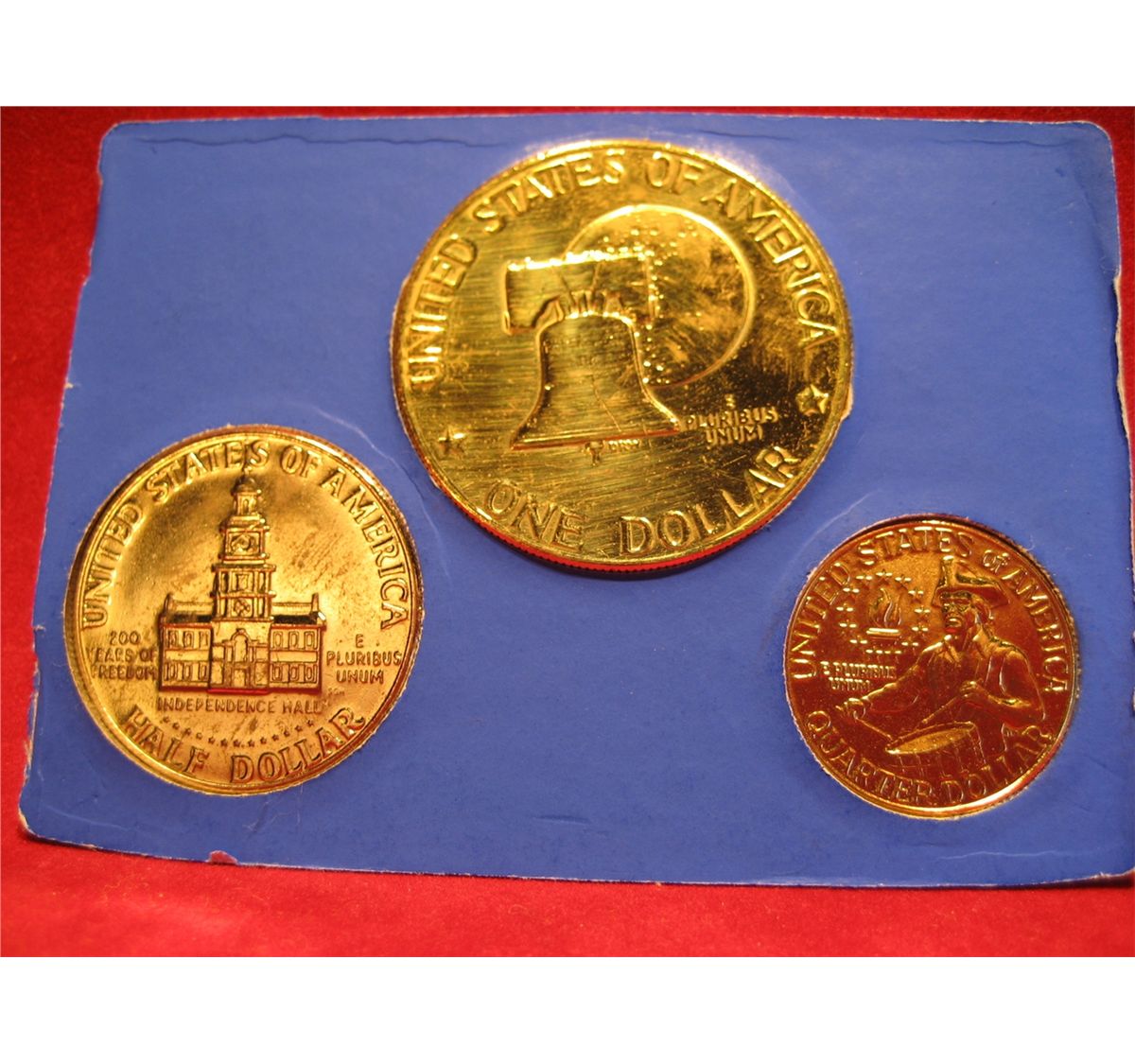 (1) EISENHOWER BICENTENNIAL DOLLAR, KENNEDY & WAHINGTON QUARTER ~ 1976