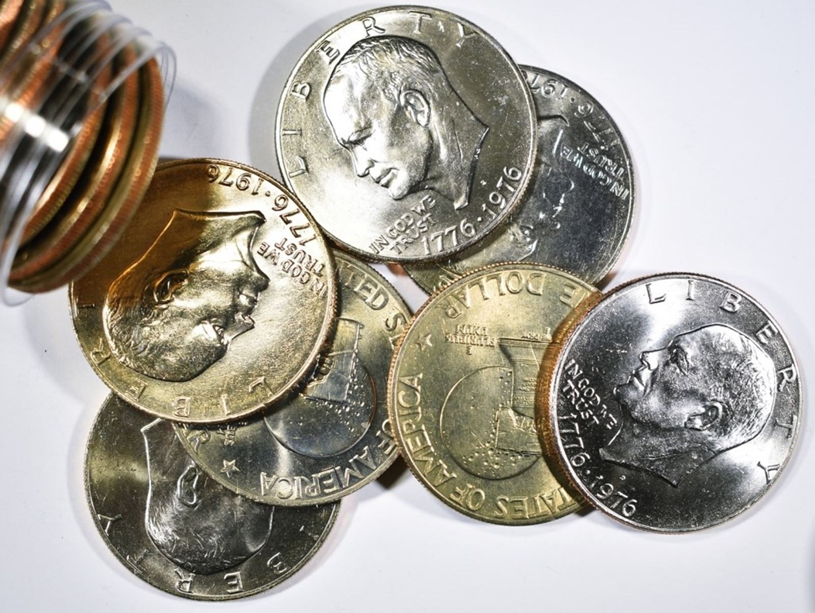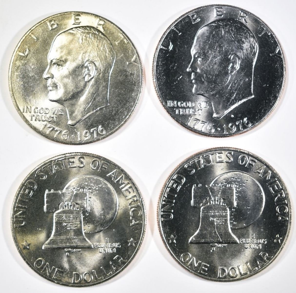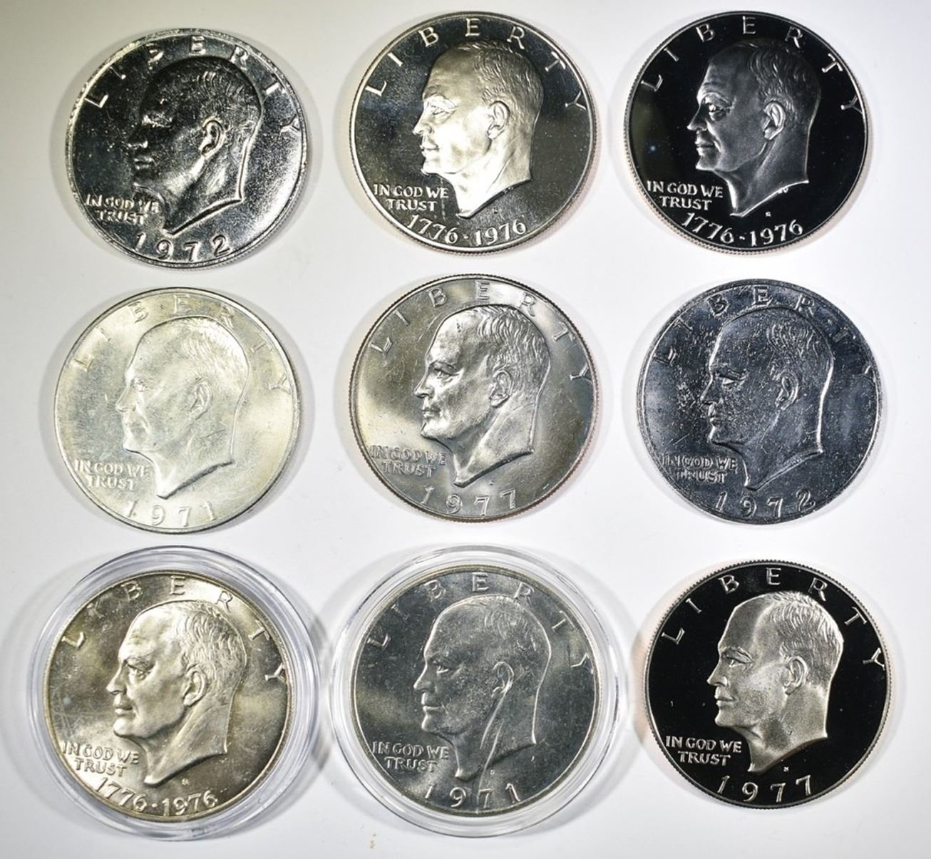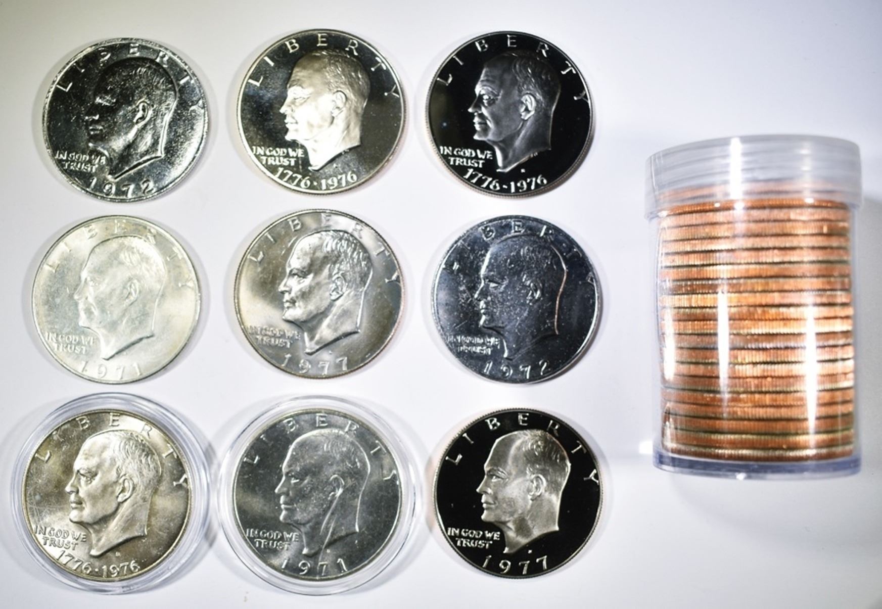 2-1971 UNC 40% SILVER, 2-72 UNC 40% SILVER, 1-1976 40% SILVER, 2-76 CLAD PROOF, 1-77-UNC & PROOF CLAD PLUS ROLL OF 20-BU 1976 CLAD; ESTIMATE $100 - $110.