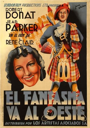OLCINA, JAIME. EL FANTASMA VA AL OESTE. THE GHOST GOES WEST. 1936. 100x70cm. (40x27in.). Litografía. A-. Entelado.