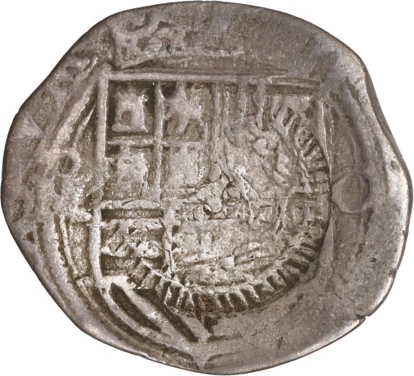 EL SALVADOR, 1 real, arms countermark (Type V, 1869) on a Mexico City, Mexico, cob 1 real, Philip II, assayer O to right, mintmark oM to left, rare, ex-Hubbard. KM-51. 2.58 grams. Weak but recognizable countermark (Fine, possibly a contemporary counterfeit) on shield side of a fairly well-detailed host (Fine) that is remarkably early (struck about 300 years before the countermark), full cross and shield, clear O to left and oM to right, nicely toned. Pedigreed to the Clyde Hubbard Collection, with his tag.