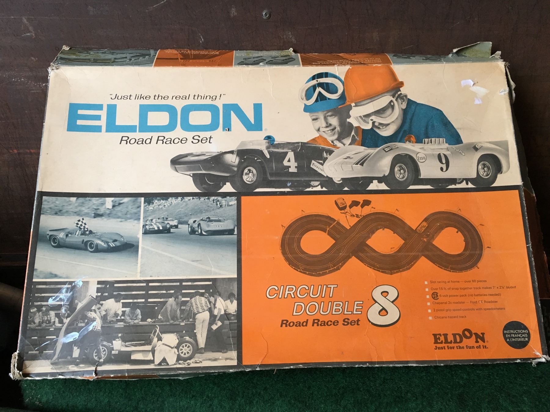 RACE CAR SET W/ ORIGINAL BOX, TRACK, 2 CARS