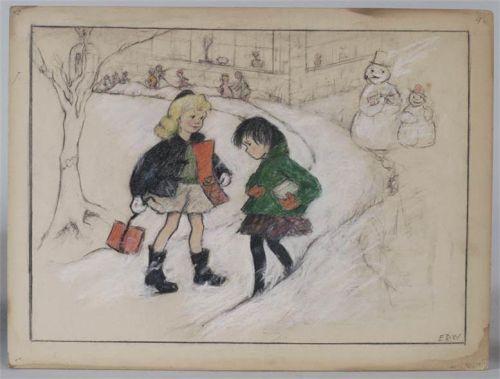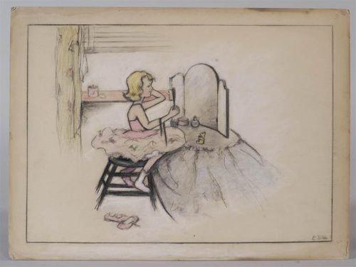 ELEANOR REVERE WEEDOR Group of 9 original illustrations each 13"x18" pastel on board initialed ERW lower right, some with stains near edges, CONDITION: stainind, toning and some mildew, PACKING AND SHIPPING BY FAIRFIELD AUCTION WITHIN CONTINENTAL USA (excluding insurance) $50,