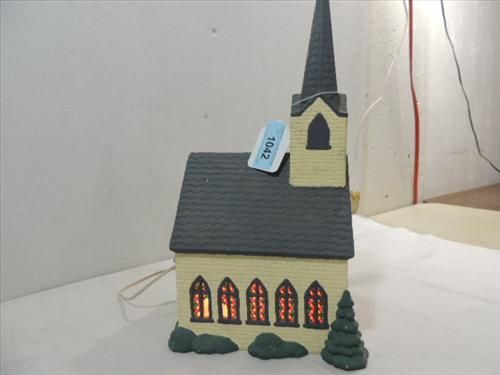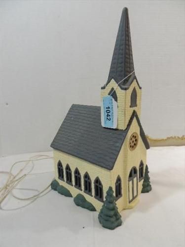 ELECTRIC LIGHTED CERAMIC CHURCH & STEEPLE 17"H. AS SHOWN. VIEW PICTURE FOR DETAIL.