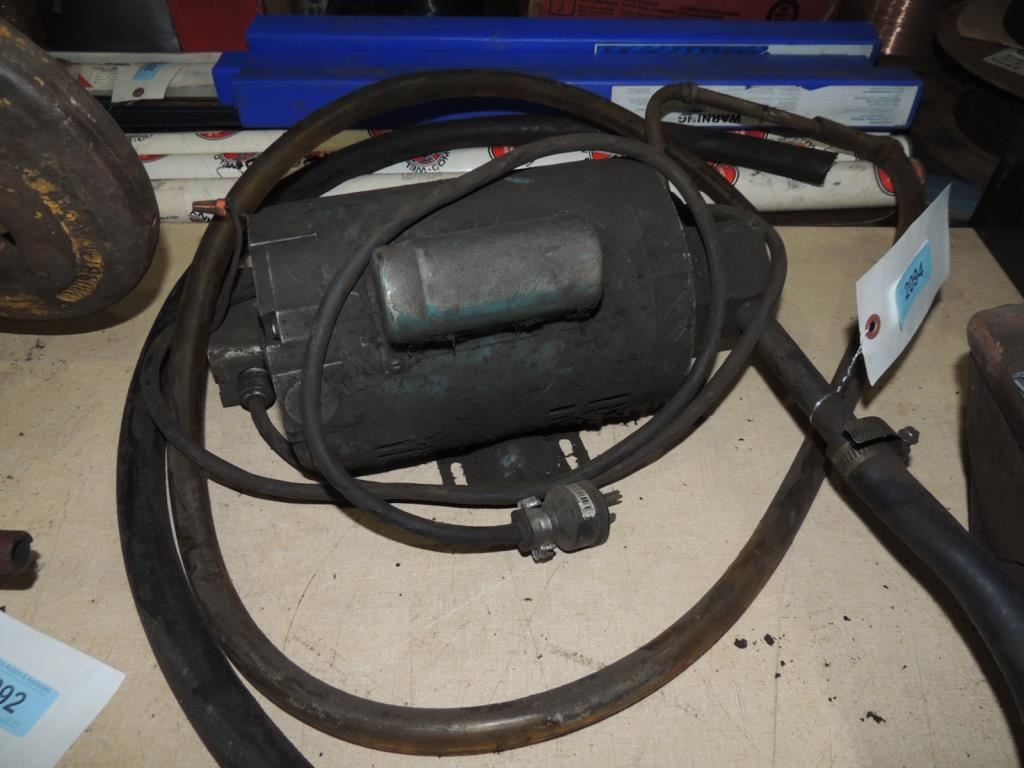 ELECTRIC MOTOR PUMP WITH HOSES, LARGE MOTOR PUMP WITH HOSES AS SHOWN SEE PHOTO FOR MORE DETAILS.
