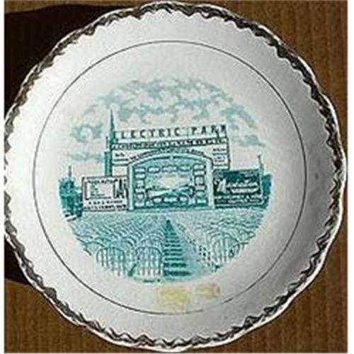 ELECTRIC PARK SOUVENIR PLATE -- c1910, 7? diameter, pictures outdoors Electric Park Theater