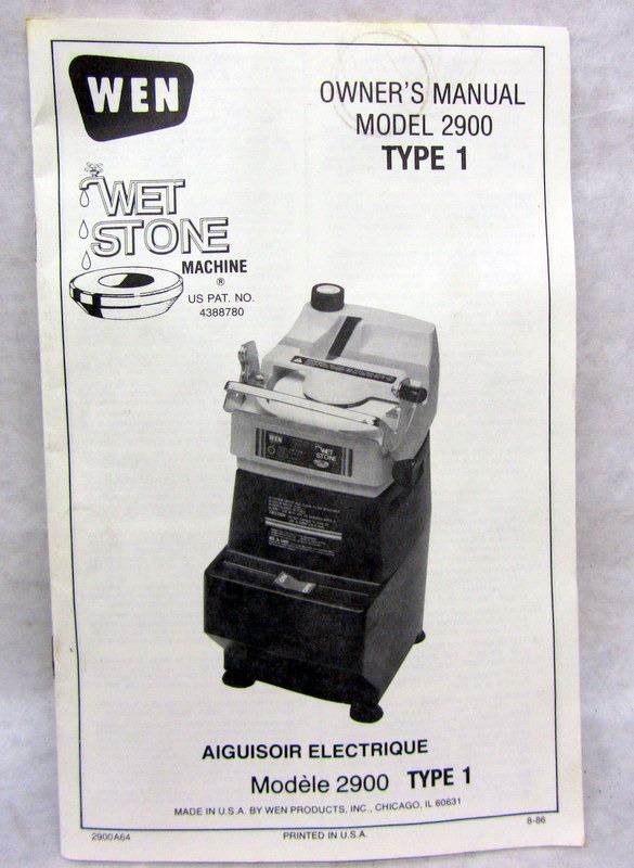 WEN MODEL 2900 ELECTRIC WET STONE. EXCELLENT CONDITION. MADE IN USA