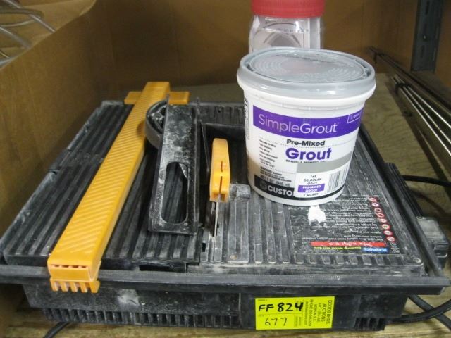 ELECTRIC TILE SAW & A CONTAINER OF GROUT