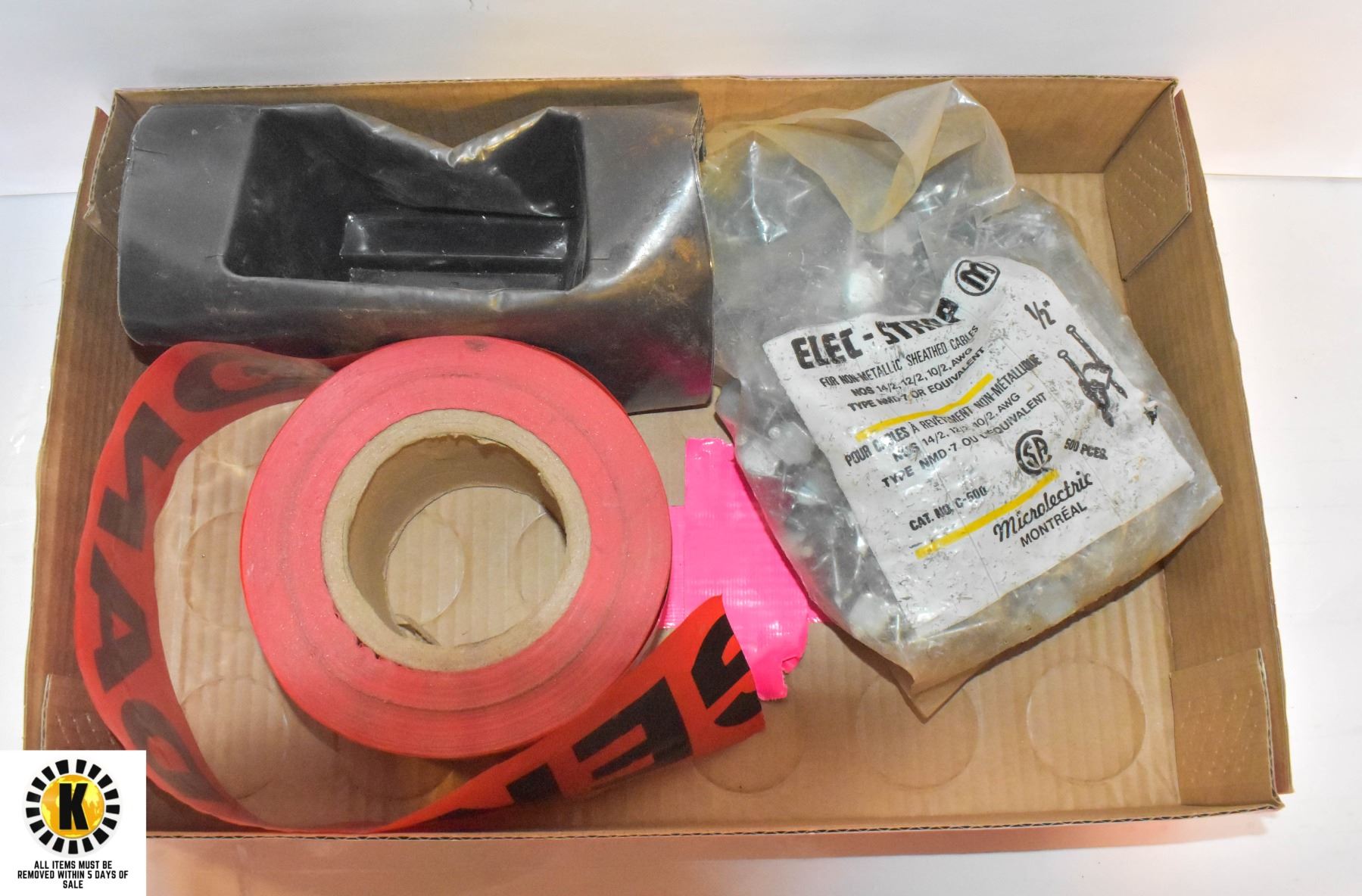1/2" ELEC-STRAP BAG FULL, 5 NEW EXTERIOR VAPOR BARRIER BOX, DANGER TAPE