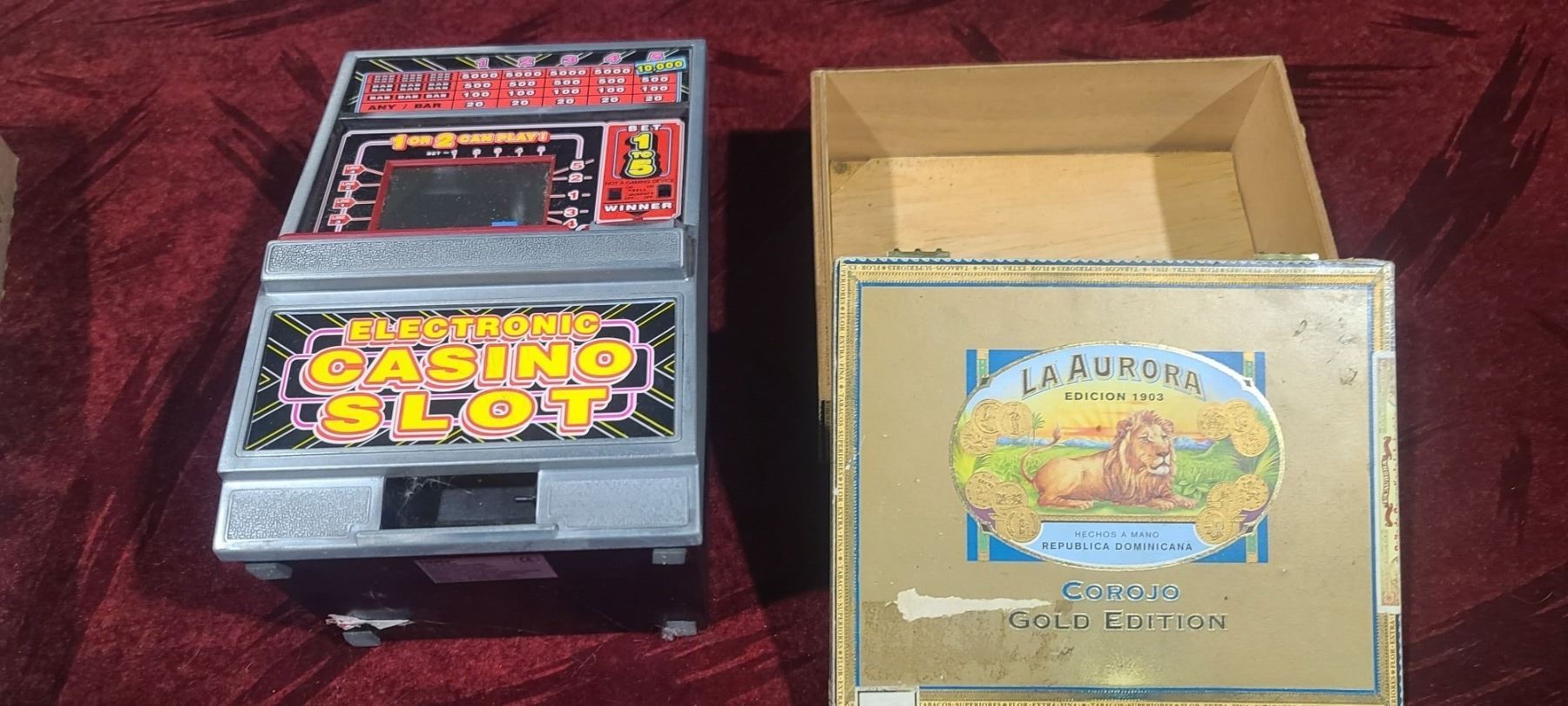 ELECTRONIC SLOT MACHINE AND CIGAR BOX
