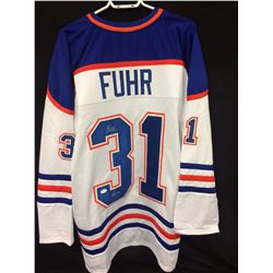 Grant Fuhr Signed Oilers Jersey Inscribed "HOF 03" (JSA COA)