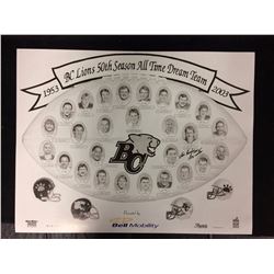 BC LIONS 50TH SEASON ALL TIME DREAM TEAM PRINT (1953-2003) LUI PASAGLIA AUTOGRAPH