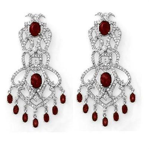ACA CERTIFED 17.50 ctw DIAMOND & RUBY LADIES EARRINGS IN 14KT WHITE GOLD