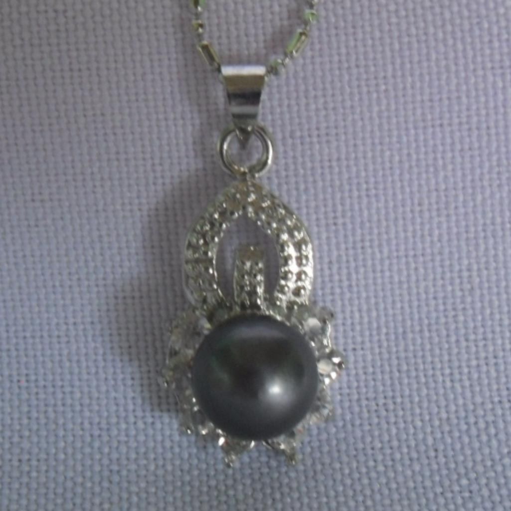 ELEGANT BLACK PEARL CZ NECKLACE; AUTHENTIC PHILIPPINE P **|**|** ELEGANT BLACK PEARL CZ NECKLACE; AUTHENTIC PHILIPPINE PEARL; METAL-SILVER ; MSRP: $300