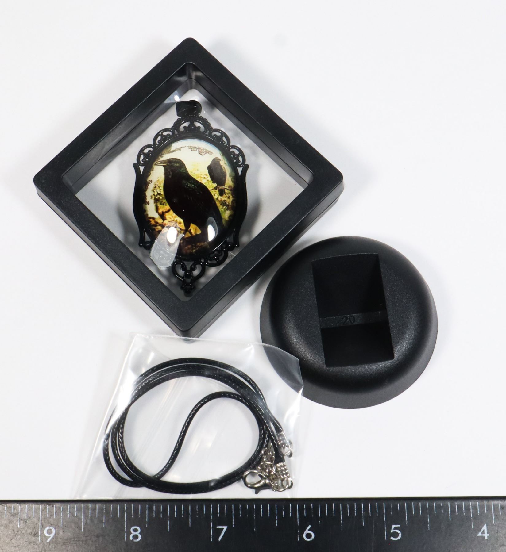 ELEGANT BLACK PENDANT WITH GOTHIC CROWS,