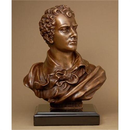 The bust is mounted onto a marble base, stands 12.5 high by 9.5 wide, and is marked LORD BYRON in the front of the bronze. It has been cast from the finest pure bronze by the talented artisans working in our own United States art foundry.