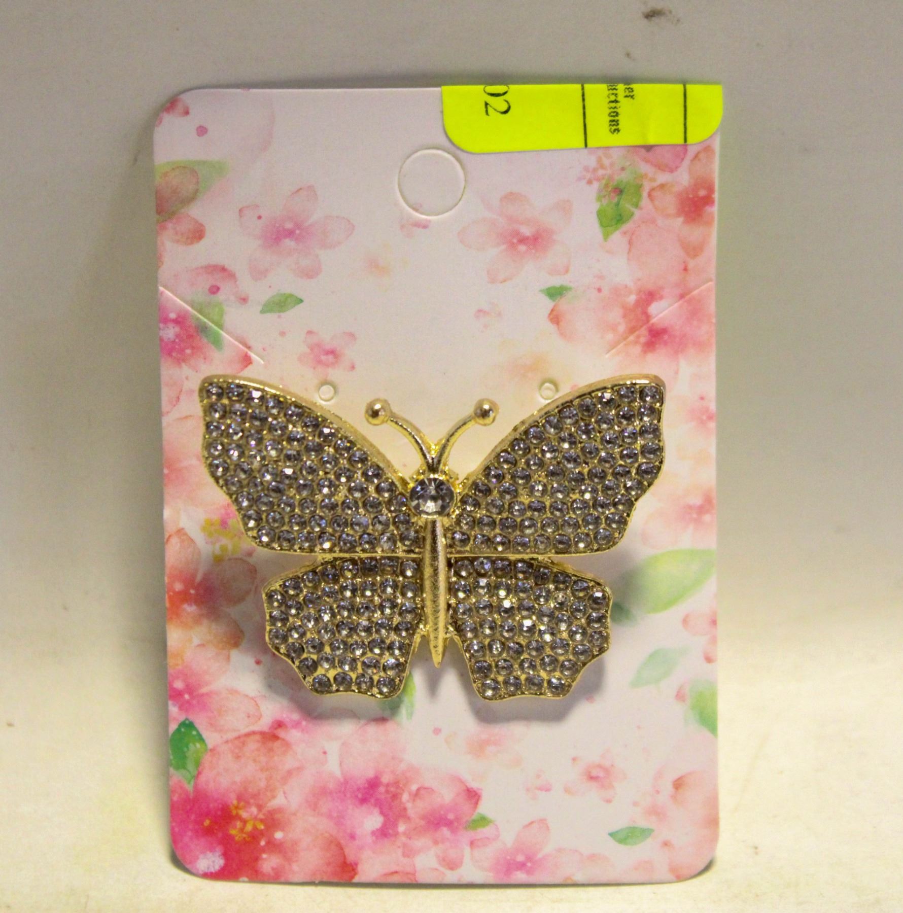 ELEGANT BUTTERFLY BROOCH 1.9”X2” RHINESTONE FILLED
