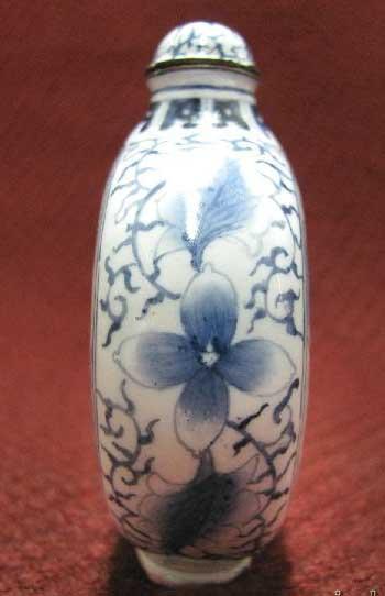 Copper Enamel Flower & Bird Pattern Snuff Bottle Height : 3in Width: 2.5in