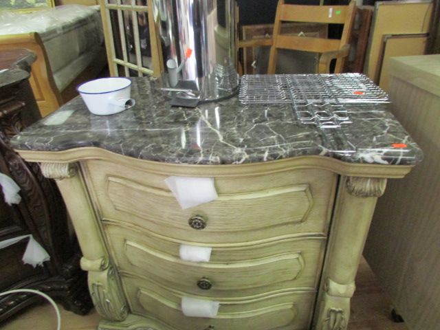 ELEGANT DESIGN END TABLE - ANTIQUE WHITE - SOLID MARBLE TOP - NEW - RETAIL $899