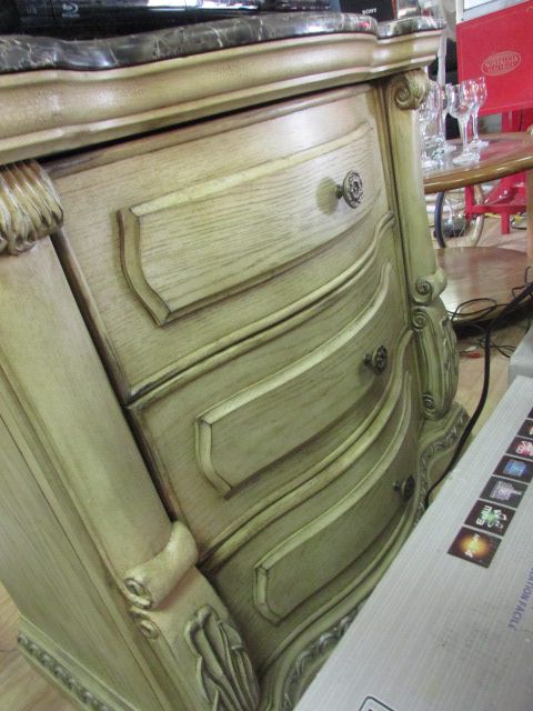 ELEGANT DESIGN END TABLE - ANTIQUE WHITE - SOLID MARBLE TOP - NEW - RETAIL $899