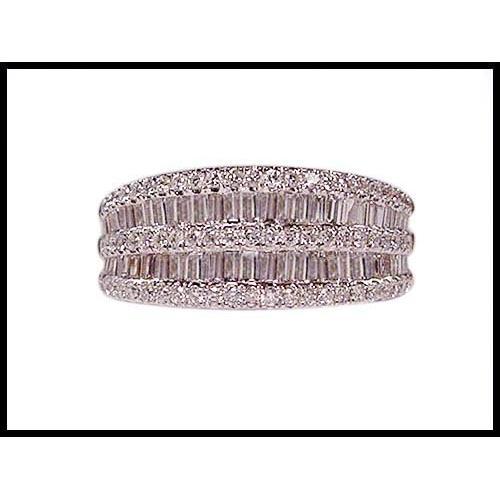 This 18K solid white gold ring is elegant. 57 baguette white diamonds total.67 carats and 69 full cut sparkling diamonds .43 carats. Size 6 1/2 is easy to change. Stone portion measures 21mm (13/16") wide x 9mm (5/16") long. Though very well priced for only $2450.00, it can now be yours for much, much less.