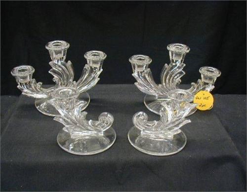 ELEGANT GLASS INCLUDES (1) PR. BAROQUE 3 CUP CANDLEHOLDER, (1) PR. BAROQUE SINGLE CANDLE HOLDER, 4 PC