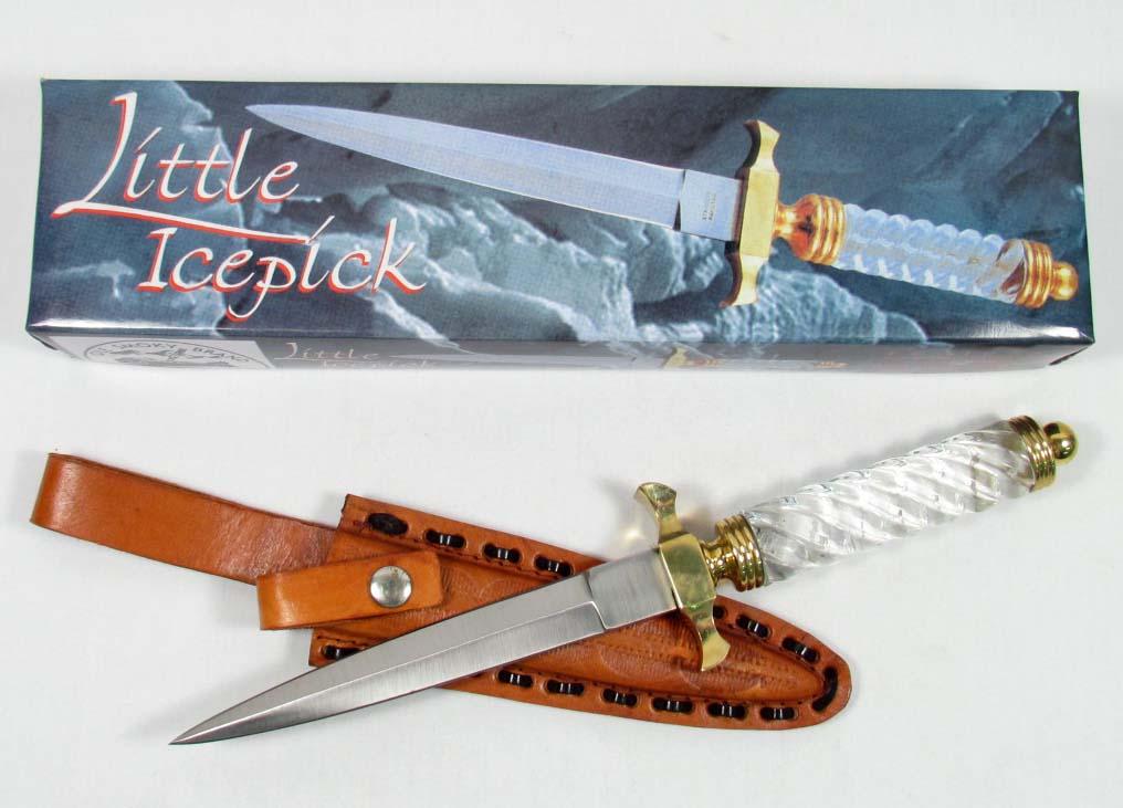 ELEGANT ICE BOOT KNIFE W/ CLEAR HANDLE AND SHEATH IN ORIG. BOX - Approx. 11" long overall.