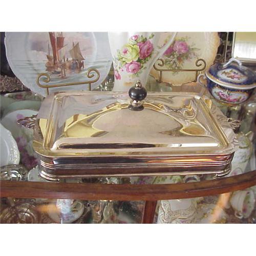 <tr><td>Title:ELEGANT LARGE SILVERPLATE SERVING ENTREE DISH</td></tr>