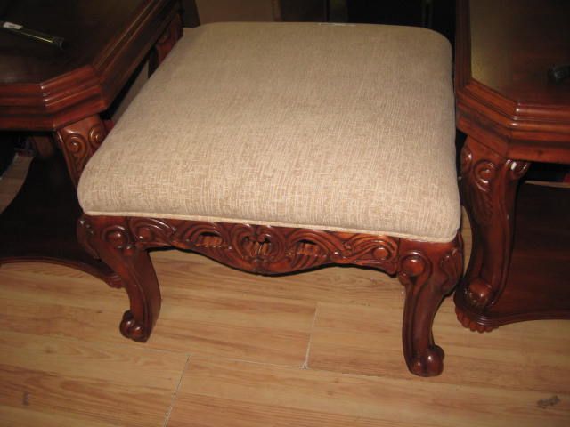 ELEGANT PADDED OTTOMAN W/ CHERRY LEGS - NEW