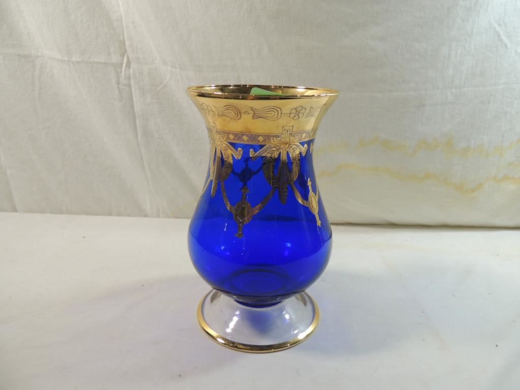 SC LINE MADE IN ITALY COBALT BLUE GLASS VASE WITH GOLD DETAIL ELEGANT AS SHOWN SEE PHOTO FOR MORE DETAILS
