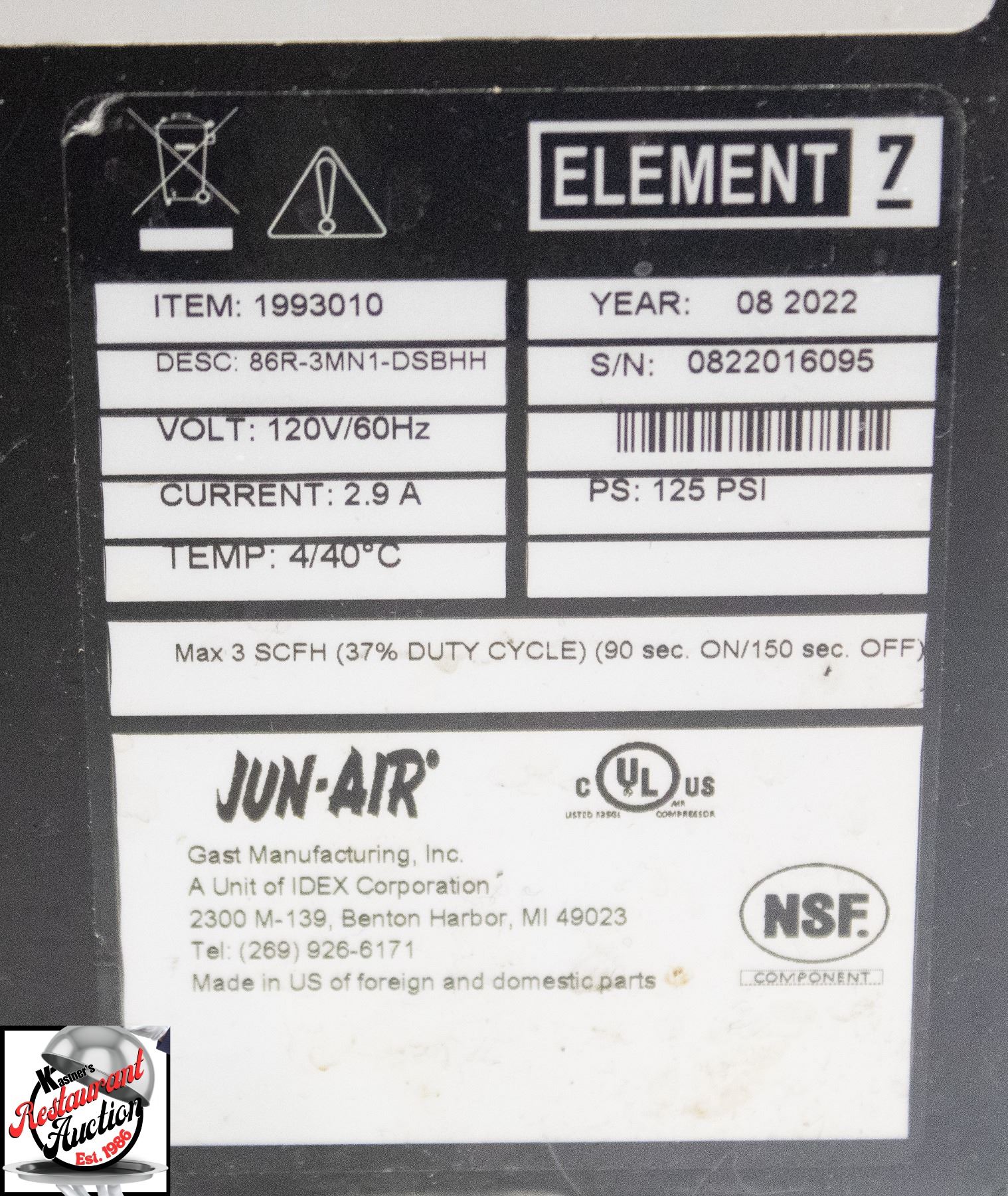 MODEL # 86R-3MNI-DS8HH, 120 VOLTS, 60 HZ, 2.9 AMPS, D.O.M. 08 / 2022 15" X 7.5" X 24"