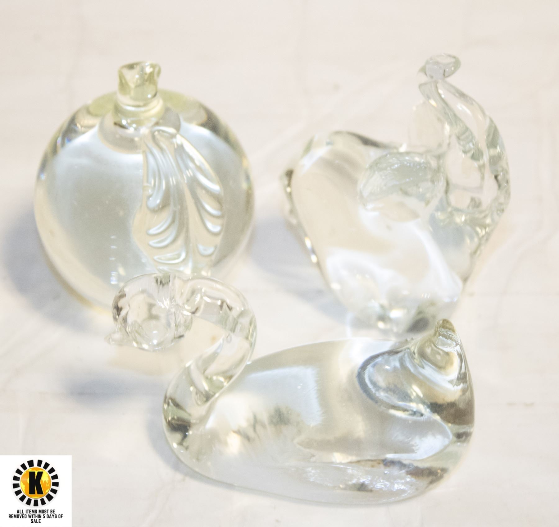 ELEPHANT, APPLE & SWAN GLASS PAPERWEIGHTS