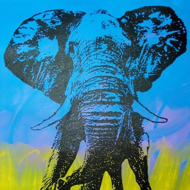 Artist: TONY AZZITO | Title of Art: ELEPHANT 2643 | Medium: HAND SIGNED ORIGINAL PAINTING WITH SILKSCREEN ON CANVAS | Edition Size: Original | Art Size: 37x30 | Offered Unframed. Framing Presentation are often shown for concept only. Read description: If framed, framed size will be given | Value: $ 1000