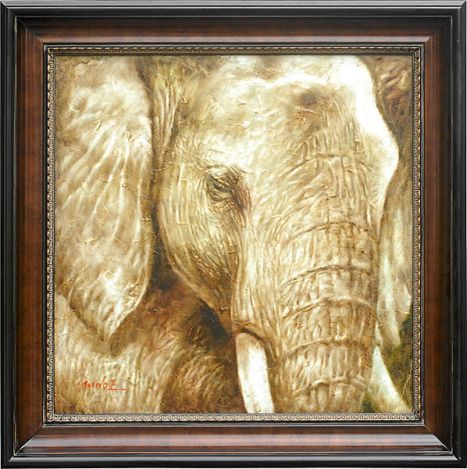 "ELEPHANT" - ORIGINAL HAND PAINTED OIL ON CANVAS - PROFESSIONALLY FRAMED - IMAGE 30x 30" - FRAMED 39x 39"