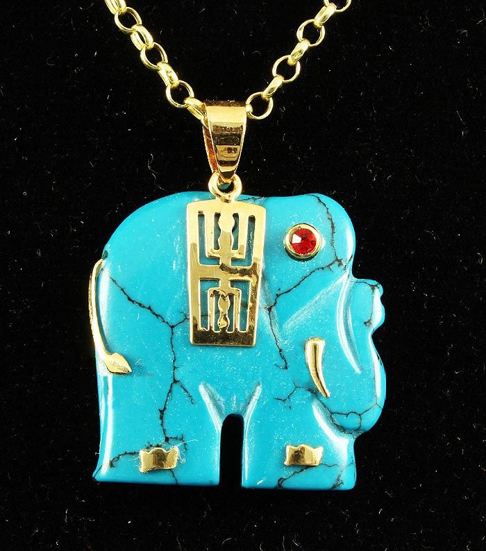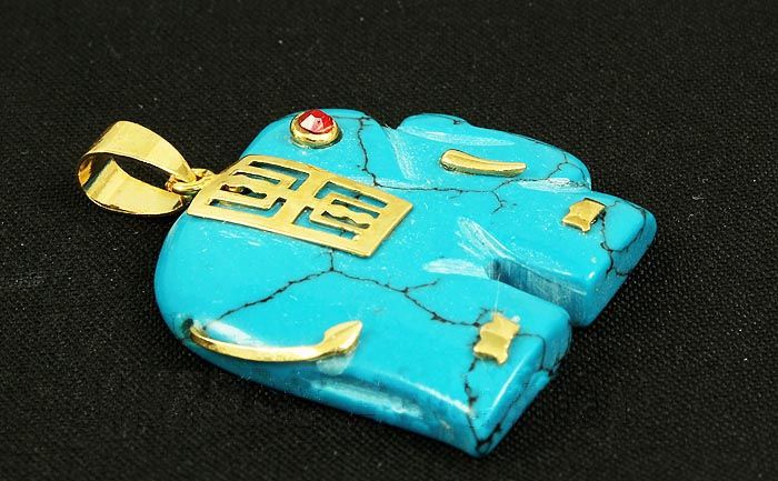ELEPHANT TURQUOISE 26.15CTW SILVER GOLD PLATED PENDANT **|**|** 18K GOLD PLATED ELEPHANT TURQUOISE SILVER PENDANT MEASURING 25.32X24.94MM ; MSRP: $100