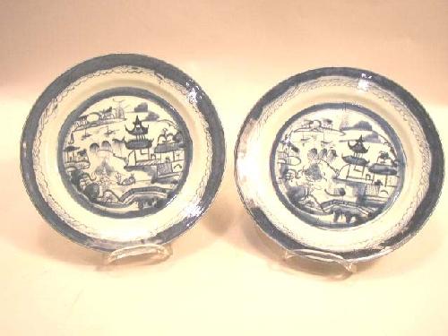 ELEVEN CHINESE EXPORT PORCELAIN DINNER PLATES; Canton pattern 10 1/4"d