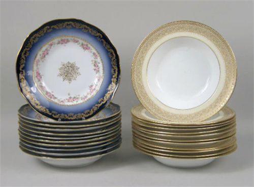 Together with twelve Royal Doulton rimmed soup bowls. 9 1/2"dia. Wear to gilt edge, chips to rim.