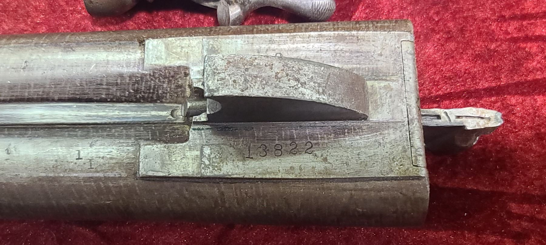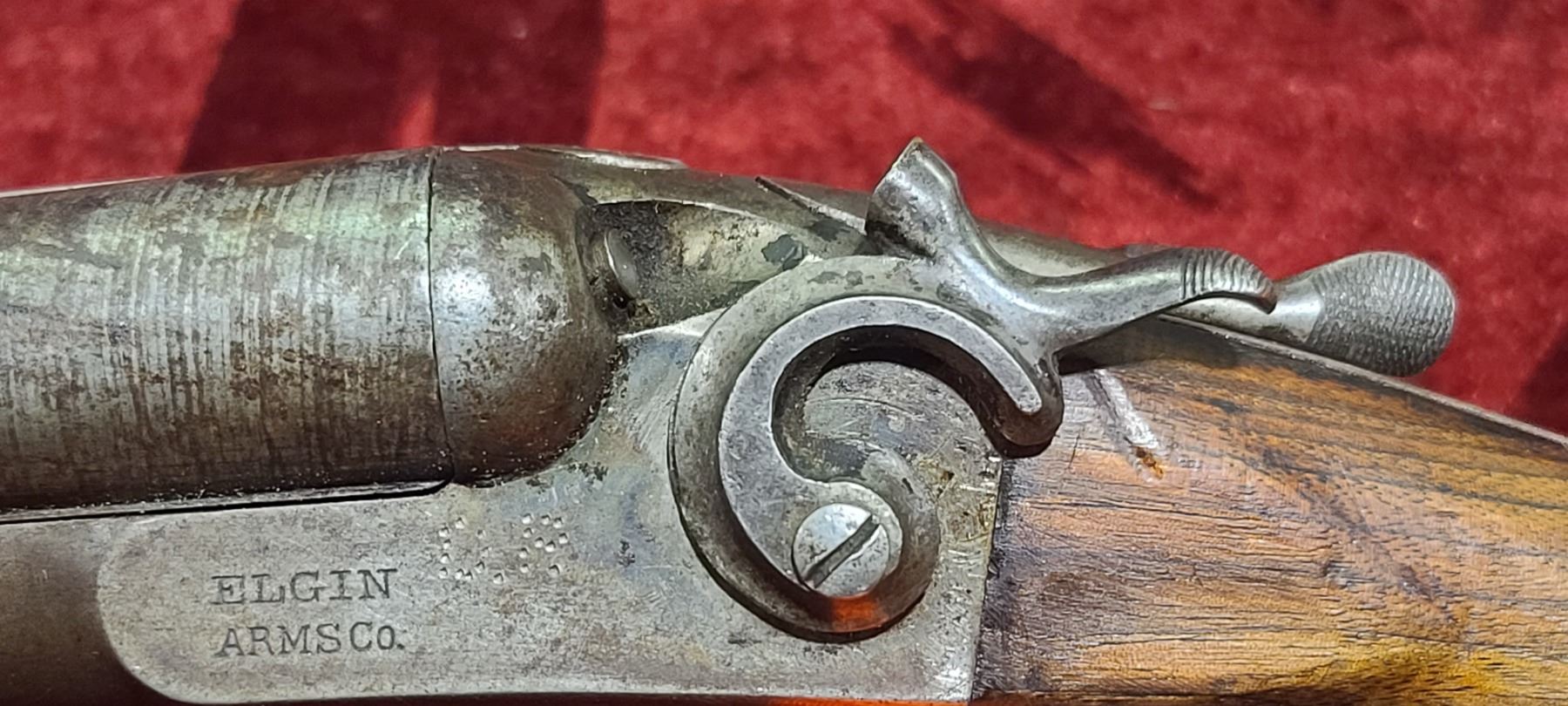 ELGIN PARTS 12ga SIDE BY SIDE - DUAL TRIGGER - 30" BARREL - SQUIRREL ON BUTT PLATE - HAMMERS AND TRIGGERS HAVE SEIEZED - DEMASCUS BARRELS - LOSE -SN:13822