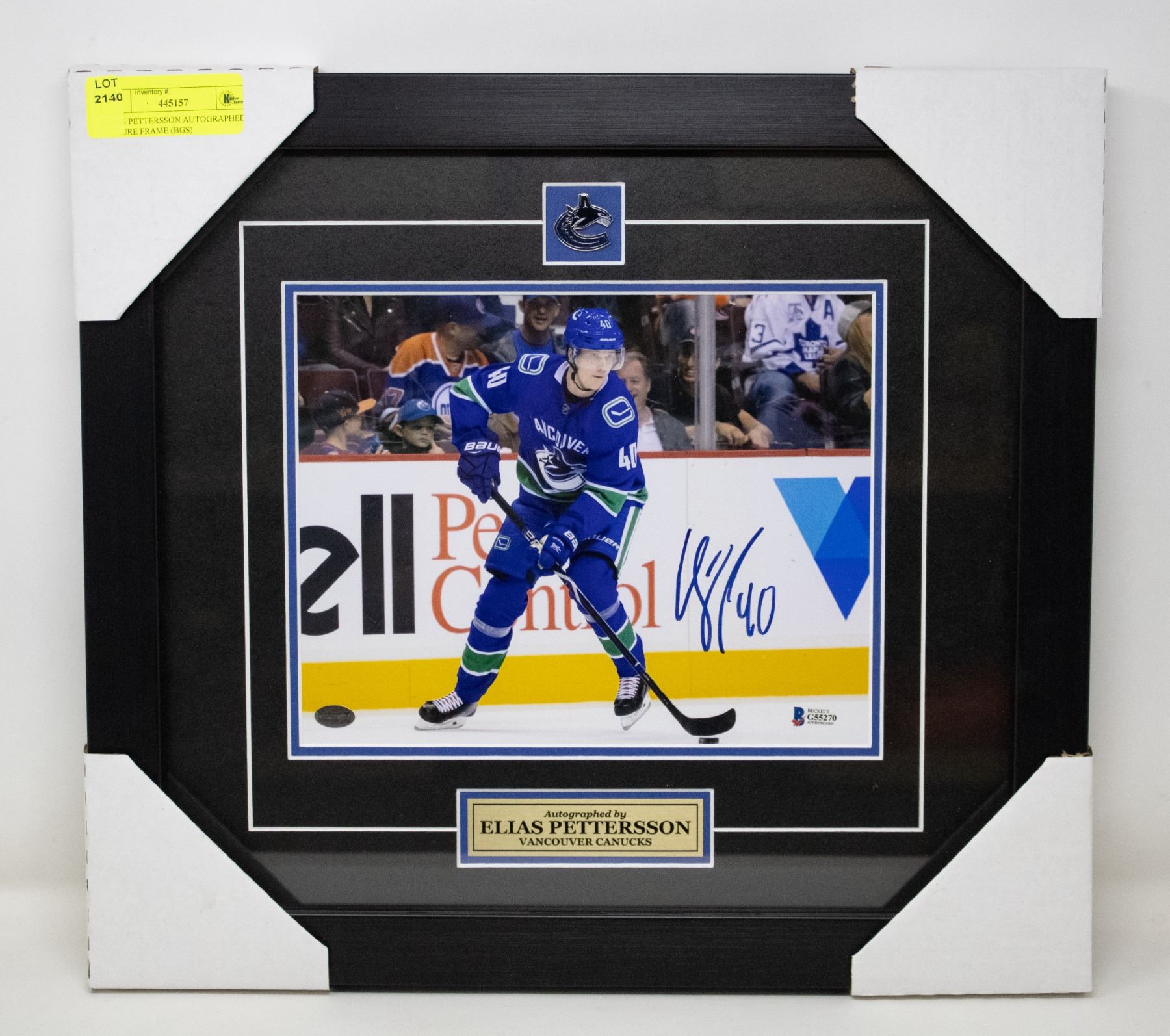 BECKETT AUTHENTICATED, ELIAS HAS BEEN ON A TEAR TO END THE 2021 SEASON FOR THE VANCOUVER CANUCKS. THE FORMER CALDER (ROY) TROPHY WINNER, AND 5TH PICK IN 2017