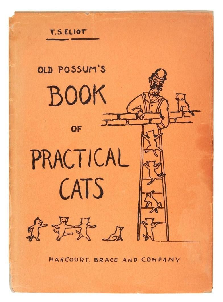 Author: Eliot, T.S. Title: Old Possum's Book of Practical Cats Place Published: New York Publisher:Harcourt, Brace & Company Date Published: [1939] Description: (8vo) gray cloth, orange pictorial jacket. First American Edition. The basis for the musical "Cats." One of a reported 2000 copies printed. Gallup A34b.