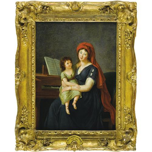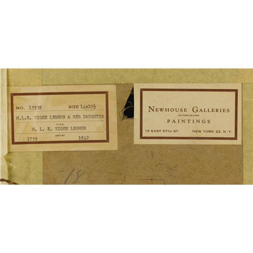 <B>Follower of ELISABETH LOUISE VIGÉE-LEBRUN</B></I> (French 1755-1842)<BR><I>M.L.E. Vigée-LeBrun And Her Daughter</B></I><BR>Oil on canvas<BR>14 x 10-1/2 inches (35.6 x 26.7 cm)<BR>Unsigned<BR><BR>Provenance:<BR>Newhouse Galleries (New York);<BR>Mr. and Mrs. F. Howard Walsh (Fort Worth, Texas);<BR>Walsh Family Art Trust<BR> <B>Condition Report:</B> relined, surface cleaned, craquelure throughout, revarnished, scattered inpainting to background and Mme. LeBrun's dress<BR><BR><b>Shipping:</b> Requires 3rd Party Shipping (<a target="_blank" href="http://www.heritageauctions.com/common/shipping.php">view shipping information</a>)