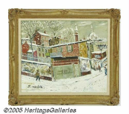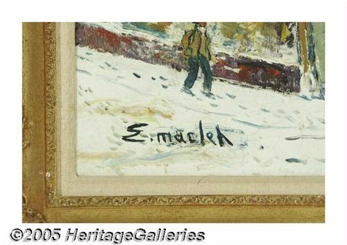 <B>ELISEE MACLET (French 1881-1962)</B></I><BR>Winter Scene<BR>Oil on canvas<BR>18in. x 21.5in.<BR>Inscribed illegibly in French on reverse<BR><BR>Condition Report: Original unlined canvas, surface yellowed with dirt but otherwise excellent condition<BR>